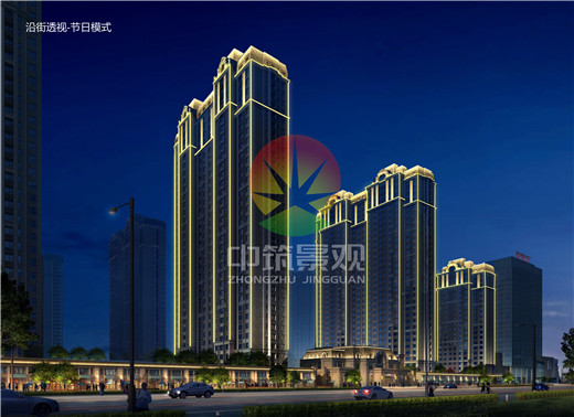(沿街)以商業(yè)、住宅等業(yè)態(tài)形式組合而形成的高檔次多業(yè)態(tài)智能化建筑,設(shè)計(jì)應(yīng)充分注意這一基本思路,通過光的強(qiáng)弱變化和色彩組合,使建筑物在夜幕降臨后淋漓盡致的表現(xiàn)出特有的風(fēng)格。充分利用各種燈光的光學(xué)屬性,塑造奪目而不眩目、簡約而不簡單、華麗而不華眾的現(xiàn)代化標(biāo)志性建筑形態(tài)。