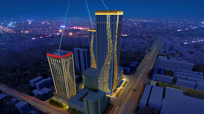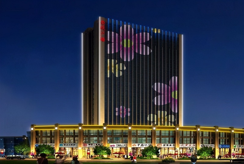 假山水池(利用專業燈光色彩搭配,巧妙的投射在假山上,并與水面形成倒影)