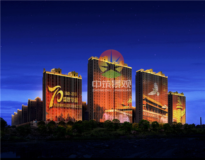 天際線塑造延續已有亮化的暖光照明 ,立面采用多媒體聯動視頻 ,以“盛世華誕”為主題 ,展現國慶70周年的主題場景。