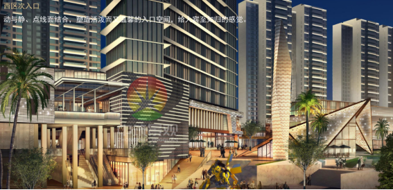 西區(qū)次入口(動(dòng)與靜、點(diǎn)線面結(jié)合,塑造活潑而又溫馨的入口空間,給人賓至如歸的感覺。)
